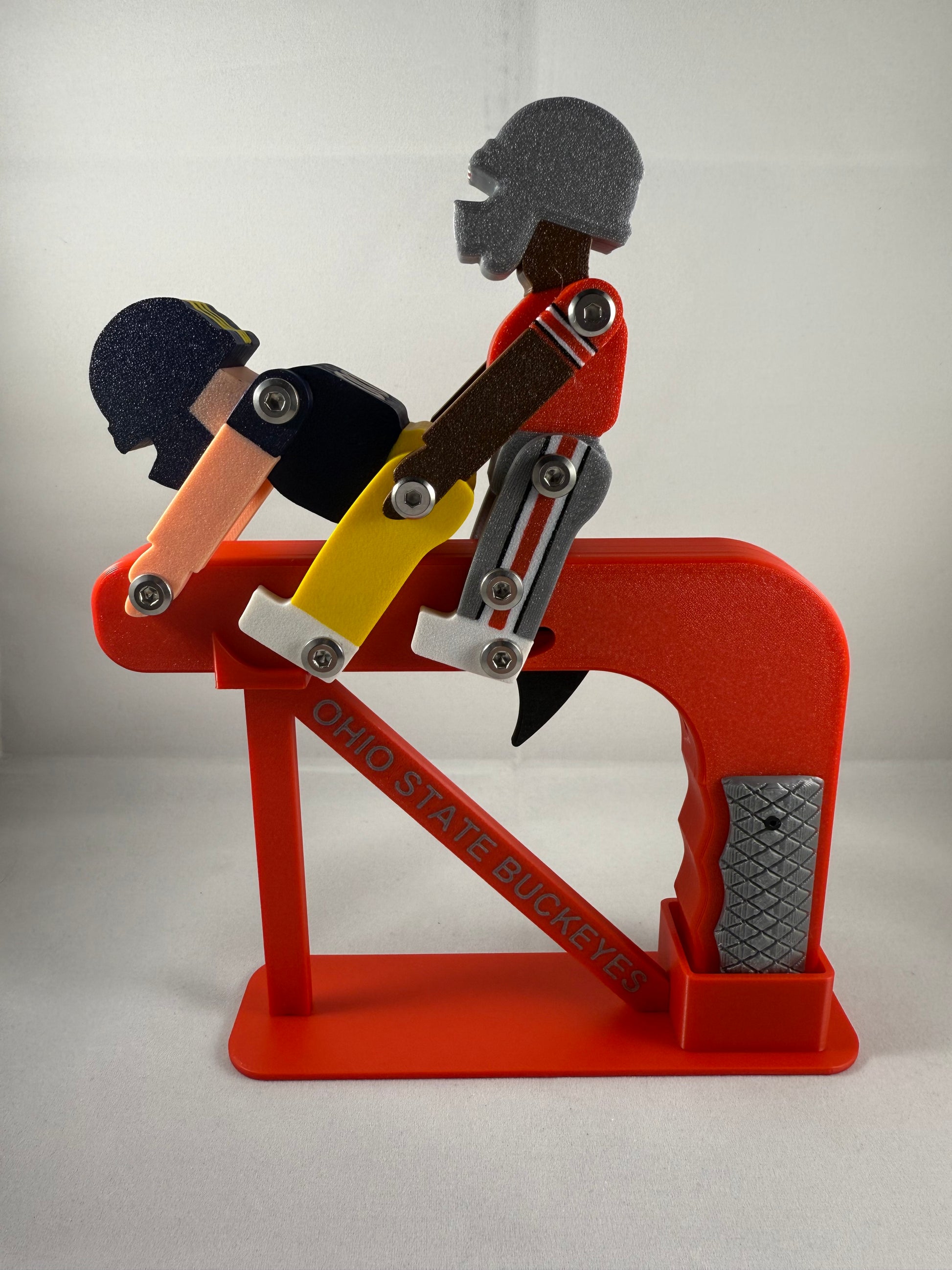 Illegal contact is designed for the true sports fan and those that like to talk a lot of junk to their friends/family each week. Pulling the trigger creates a thrusting motion between the home team and your opponent of choice!